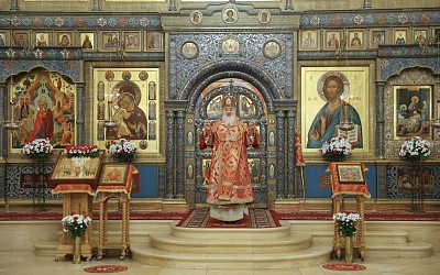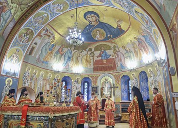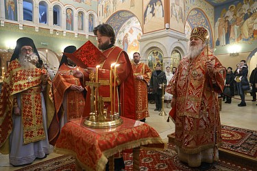 По окончании Божественной литургии была совершена лития о безвинно убиенных в годы гонений и совершено славление новомученикам и исповедникам Церкви Русской.