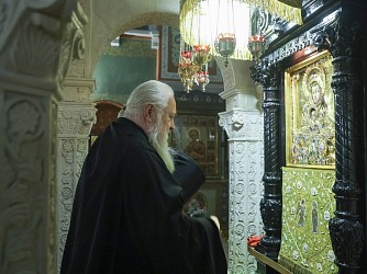 Его Преосвященству сослужили участники заседания рабочей группы по сбору материалов о новомучениках и исповедниках Церкви Русской и подвижниках благочестия, клирики обители.