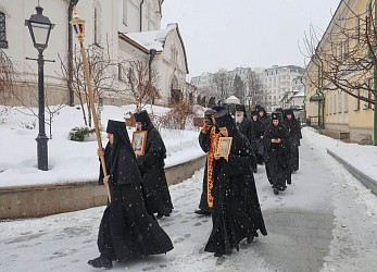 Богослужебные песнопения исполнил хор сестер Зачатьевского монастыря.