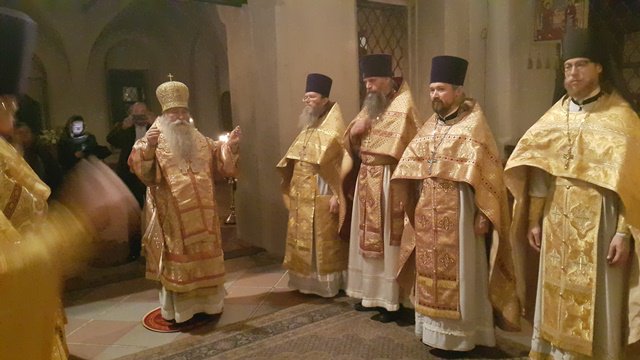 Богослужебные песнопения исполнил хор Андреевского монастыря под руководством И. Кириндас.