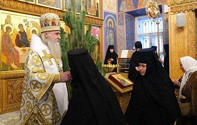 8 января 2026 года, в день попразднства Рождества Христова, праздник Собора Пресвятой Богородицы, председатель Синодального отдела по монастырям и монашеству, наместник Донского ставропигиального мужского монастыря митрополит Каширский Феогност совершил Божественную литургию в Покровском Хотькове ставропигиальном женском монастыре.