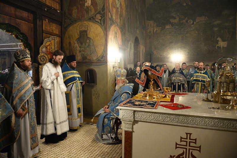 После сугубой ектении Святейший Патриарх Кирилл совершил молитву о мире в Украине.