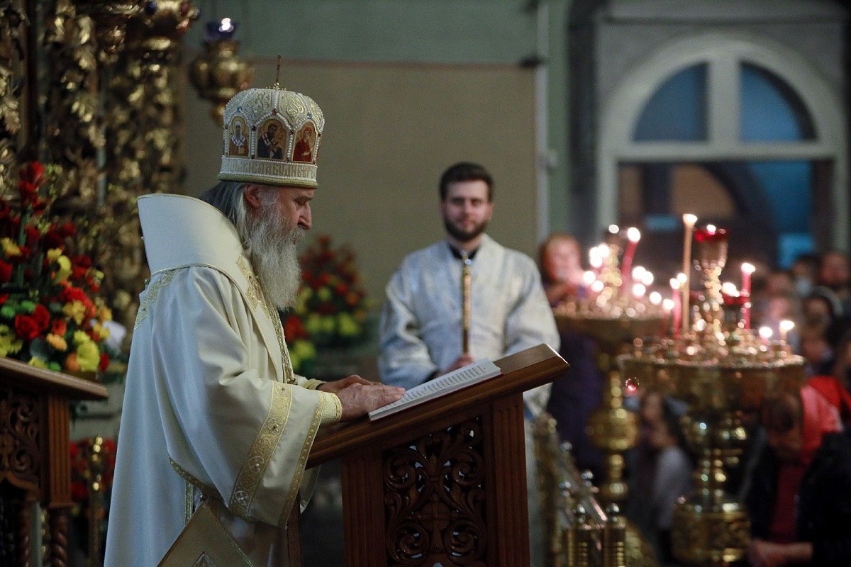 За богослужением было зачитано Пасхальное послание Святейшего Патриарха Московского и всея Руси Кирилла архипастырям, пастырям, диаконам, монашествующим и всем верным чадам Русской Православной Церкви.