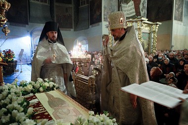После заамвонной молитвы было совершено освящение артоса – богослужебного хлеба, символизирующего незримое присутствие воскресшего Христа среди Его учеников.