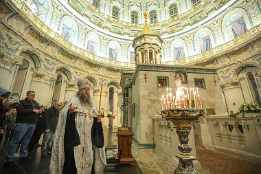 В 9 часов утра на Гробе Господнем была совершена поздняя Божественная литургия.