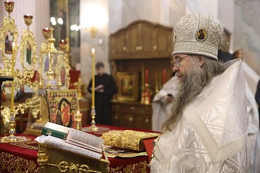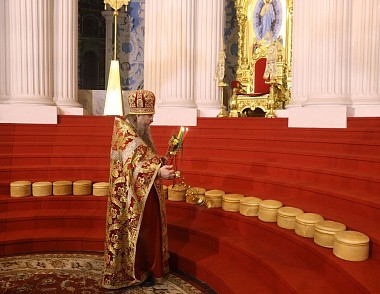 По заамвонной молитве были освящены артосы и зачитано обращение Святейшего Патриарха к священнослужителям и мирянам в праздник святой Пасхи.