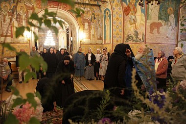 Накануне в Никольском храме обители было отслужено всенощное бдение, которое возглавил клирик монастыря протоиерей Владимир Постников в сослужении клирика Сретенского ставропигиального мужского монастыря г. Москвы иеромонах Никита (Вдовин). Ночную Божественную литургию в Успенском храме обители также возглавил протоиерей Владимир Постников.