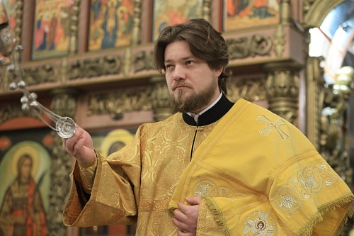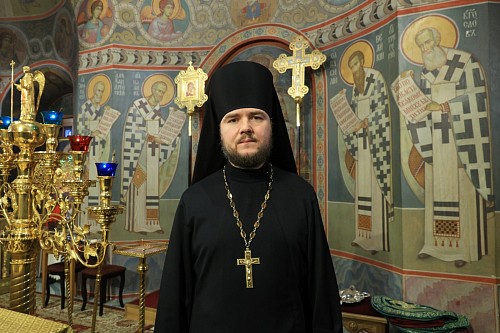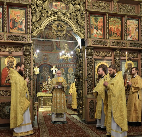 Его Высокопреосвященству сослужил временно исполняющий обязанности наместника священноинок Парфений (Леонов) с братией монастыря в священном сане.