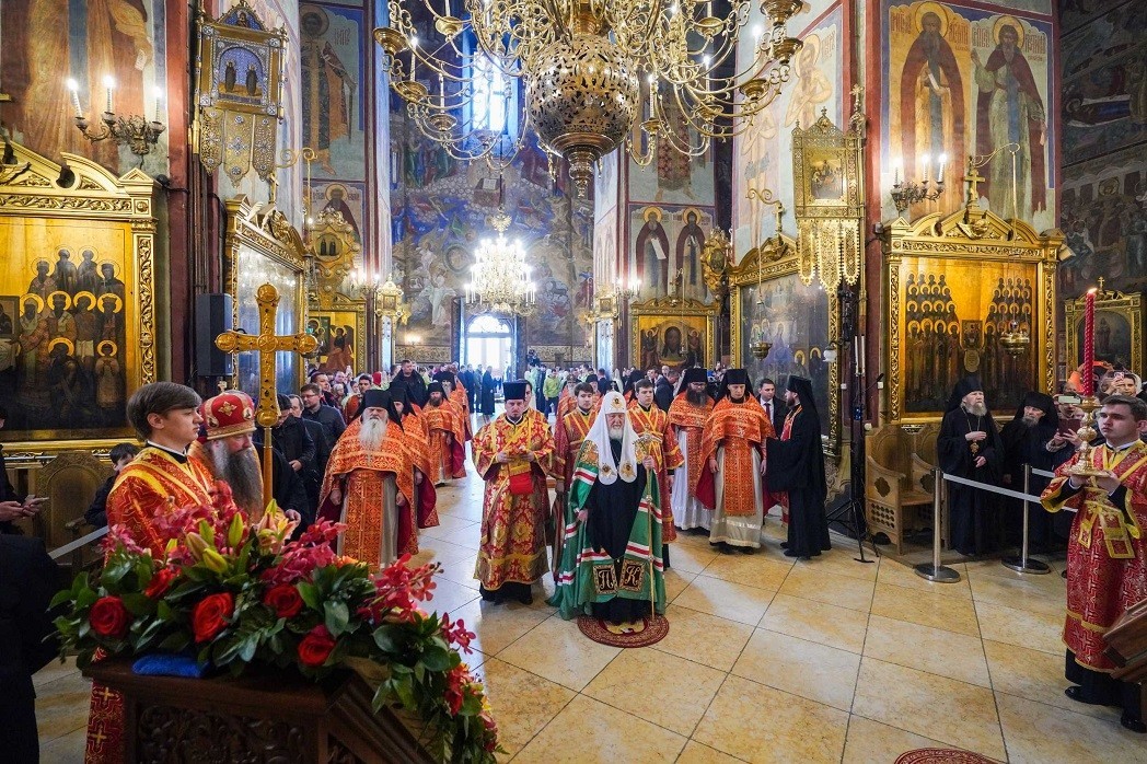 На сугубой ектении были вознесены особые прошения, Предстоятель Русской Церкви прочитал молитву о Святой Руси.