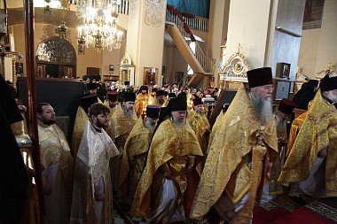 По окончании богослужения состоялась праздничная трапеза, во время которой митрополит Корнилий поблагодарил игумению Филарету за оказанный прием и обратился к сестрам и гостям обители с архипастырским словом.