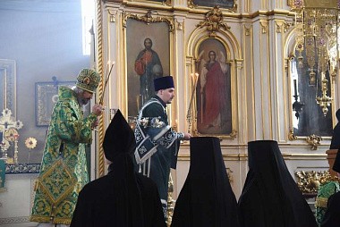За богослужением молились настоятельница Успенского Пюхтицкого ставропигиального женского монастыря игумения Филарета (Калачева) с сестрами, многочисленные паломники и прихожане, собравшиеся в этот день в обители, чтобы разделить с монашествующими духовную радость этого знаменательного события.