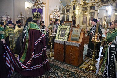 С амвона было зачитано решение Священного Синода Русской Православной Церкви о причислении монахини Екатерины к лику святых для местного почитания.
