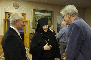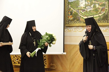Открыла вечер настоятельница обители игумения Филарета (Калачева) презентацией нового монастырского издания-альбома «Обитель Божией Матери. 125 лет Пюхтицкому Успенскому ставропигиальному женскому монастырю». Это первая книга о Пюхтицком монастыре, полностью основанная на монастырской летописи и рассказывающая всю 125-летнюю историю обители.