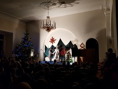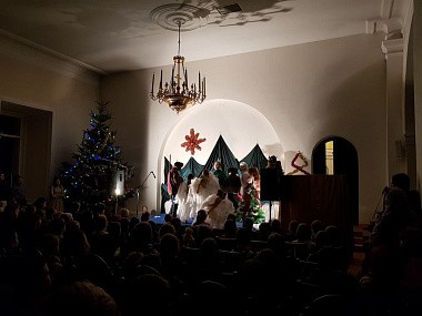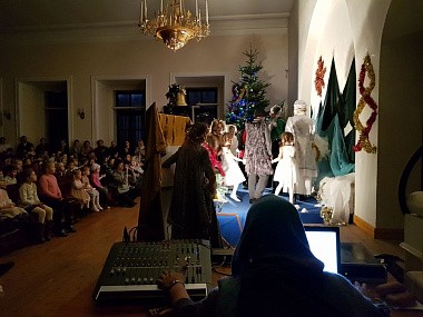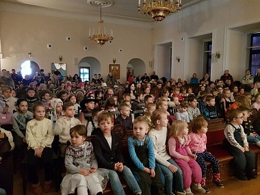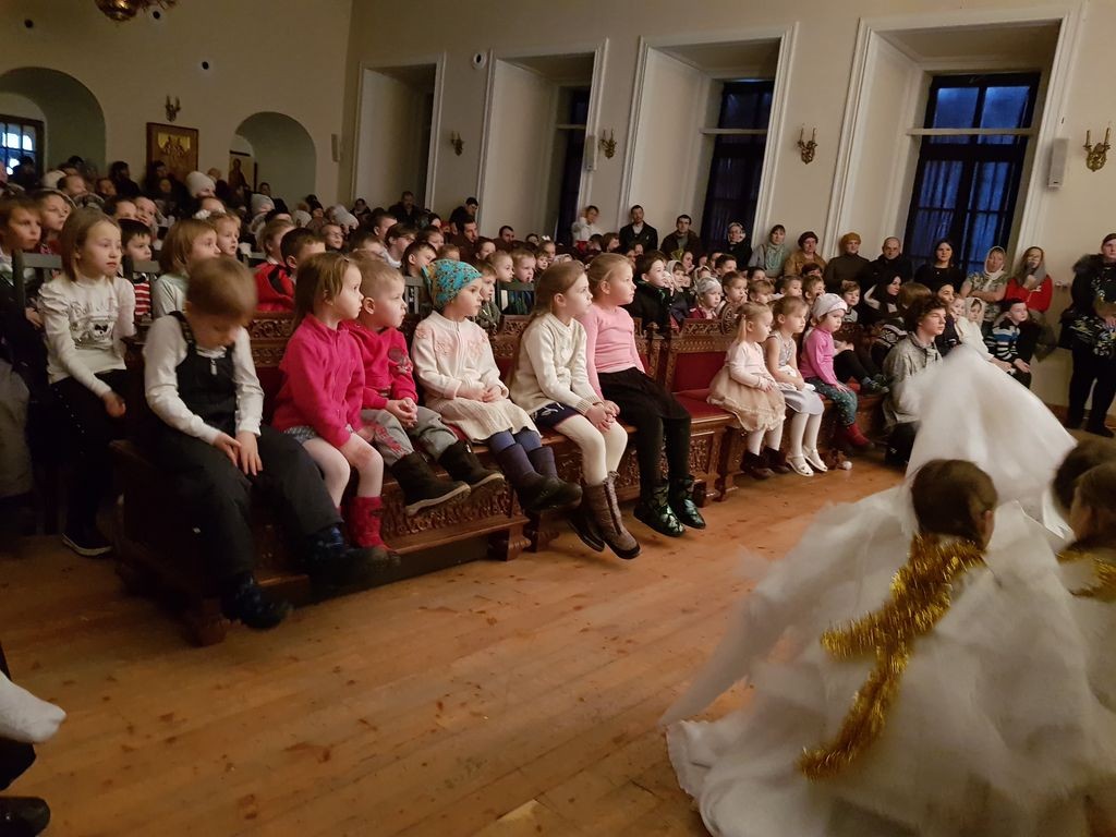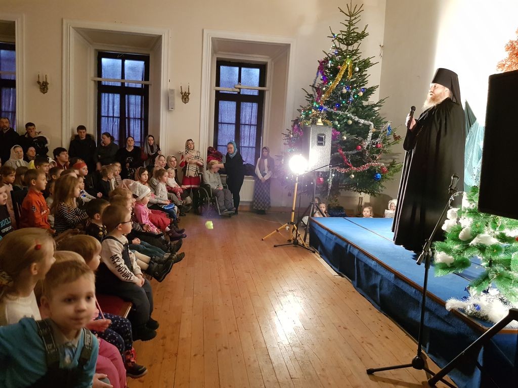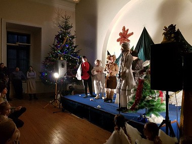 Праздничный спектакль был разыгран силами Социально-реабилитационного центра «Детский приют Саввино-Сторожевского монастыря» и театрального кружка при храме Рождества Христова в г. Звенигороде.