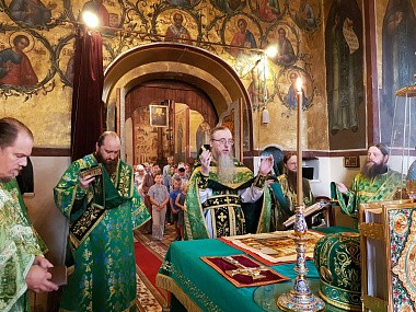 Затем праздничную Божественную литургию в монастырском соборе Рождества Пресвятой Богородицы совершил наместник обители архимандрит Савва (Фатеев) в сослужении братии монастыря и гостей в священном сане.