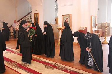 Поздравляя матушку Сергию с днем возведения в сан игумении, владыка подчеркнул, что игуменский крест нелегок, и особенно трудно быть настоятельницей в женском монастыре. Его Преосвященство пожелал матушке и сестрам, чтоб Царица Небесная была им Покровом и Предстательницей пред Престолом Божиим.