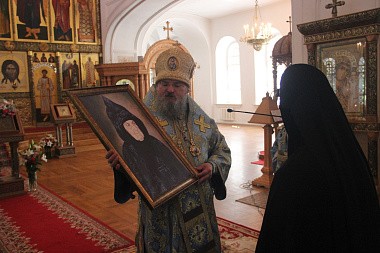 Владыка преподнес в подарок портрет схимонахини Сепфоры – нашей современницы, подвижницы благочестия, которую при жизни знали многие из шамординских сестер.