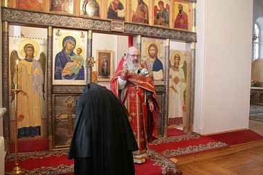 Накануне вечером в приделе в честь Сщмчч. Игнатия Богоносца и Поликарпа Смирнского были отслужены вечерня, повечерие и полиелейная утреня, а в самый день праздника архимандрит Поликарп совершил в том же приделе Божественную литургию, за которой молились настоятельница обители игумения Сергия (Щербакова) с сестрами и многочисленные гости и паломники. После богослужения состоялась праздничная трапеза для священнослужителей, сестер и гостей обители.