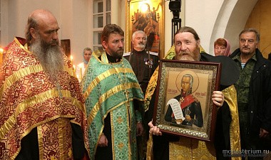 Вместе с братией, гостями и паломниками скита святому праведному воину Феодору в храме Всемилостивого Спаса молился председатель Союза писателей России В.Н. Ганичев. Валерий Николаевич 50 лет собирал материалы об адмирале Феодоре Ушакове и в настоящее время планирует передать их музею, который может быть создан в непосредственной близости от скита.
