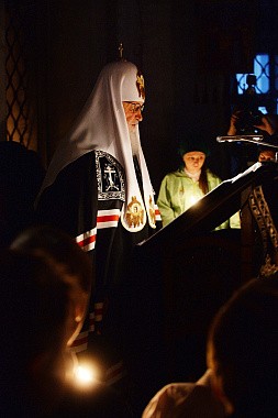 Затем Предстоятель Русской Православной Церкви произнес проповедь.