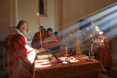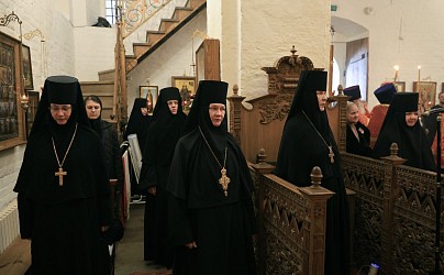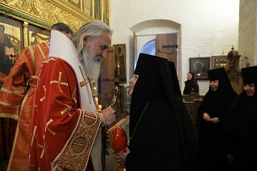 Его Высокопреосвященству сослужило монастырское духовенство.