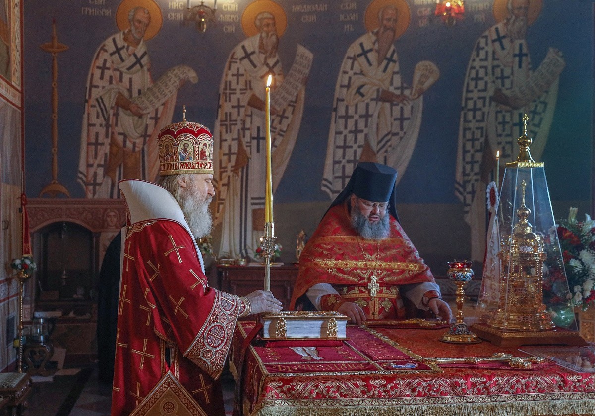 В монастырском храме во имя Живоначальной Троицы Его Высокопреосвященству сослужили клирики Стефано-Махрищском обители и подворья монастыря, гости обители в священном сане.