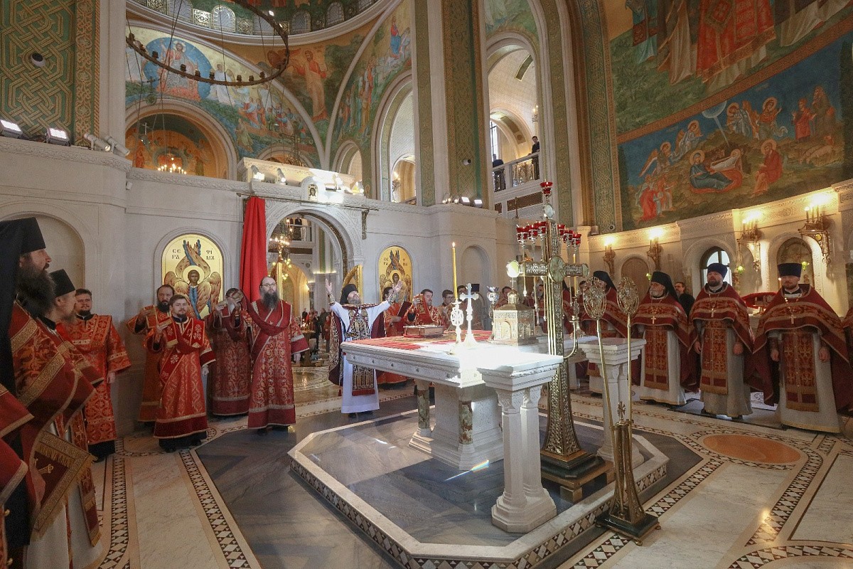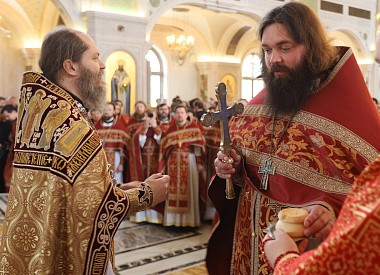За богослужением пелихор Сретенского монастыря под руководством Никона Жилы и хор Сретенской духовной академии под руководством Марка Качанкина.