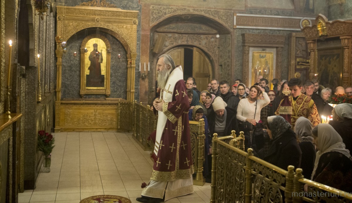 Раннюю Божественную литургию в монастырском соборе Сретения Владимирской иконы Божией Матери возглавил председатель Синодального отдела по монастырям и монашеству, наместник Свято-Троицкой Сергиевой лавры архиепископ Сергиево-Посадский Феогност.