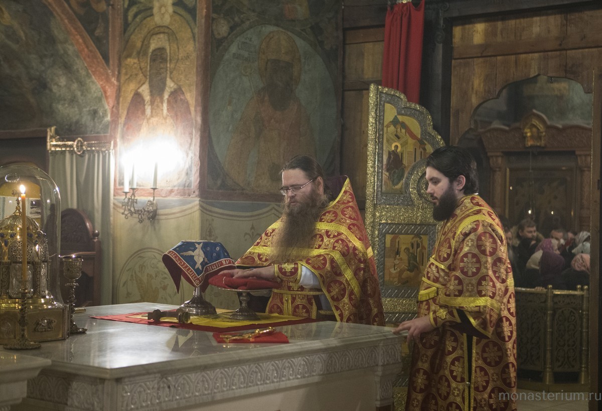 Его Высокопреосвященству сослужили заместитель председателя Синодального отдела по монастырям и монашеству архимандрит Стефан (Тараканов), насельник Сретенского монастыря архимандрит Иов (Гумеров), братия обители в священном сане.