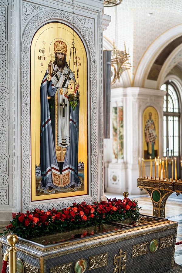 Вечером наместник монастыря архиепископ Верейский Амвросий вместе с насельниками обители совершил малую вечерню с акафистом священномученику Илариону, покровителю Сретенского монастыря.