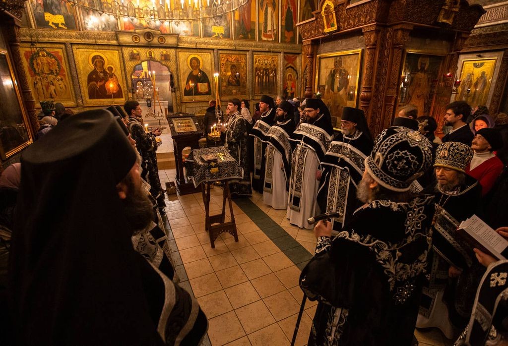 Вечером 18 марта 2020 года в Сретенском ставропигиальном мужском монастыре Москвы наместник обители архиепископ Верейский Амвросий совершил Литургию Преждеосвященных Даров в сослужении монастырской братии.