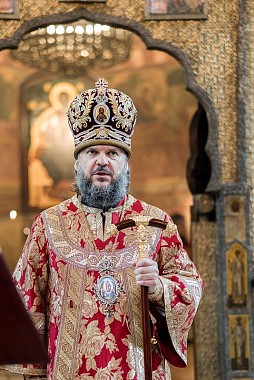 В завершение богослужения архиепископ Амвросий поздравил Святейшего Патриарха Московского и всея Руси Кирилла с днем тезоименитства: