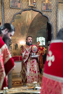 За Литургией Его Высокопреосвященству сослужили насельники обители: иеромонахи Марк (Святогоров), Никон (Париманчук), Иннокентий (Присадков), Афанасий (Дерюгин), Андроник (Пантак) и Филарет (Трунин), иеродиаконы Серафим (Чернышук), Агафангел (Давлатов) и Савва (Салюк).