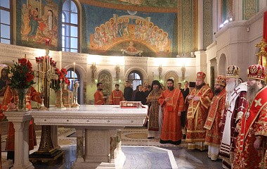 За Божественной литургией Его Высокопреосвященству сослужили: архиепископ Егорьевский Матфей (Копылов), епископ Павлово-Посадский Силуан (Вьюров), епископ Петергофский Силуан (Никитин), епископ Енисейский и Лесосибирский Игнатий (Пунин), игумен Иоанн (Лудищев), братия и гости обители в священном сане.