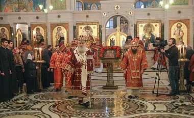 После отпуста и молитвы перед мощами священномученика Илариона митрополит Феогност поздравил братию и прихожан с днем памяти небесного покровителя обители и передал благословение Святейшего Патриарха Московского и всея Руси Кирилла.