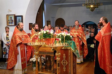 В сам день праздника Божественную литургию в храме Прп. Стефана Махрищского возглавил игумен Арсений (Борновалов) в сослужении клириков обители.