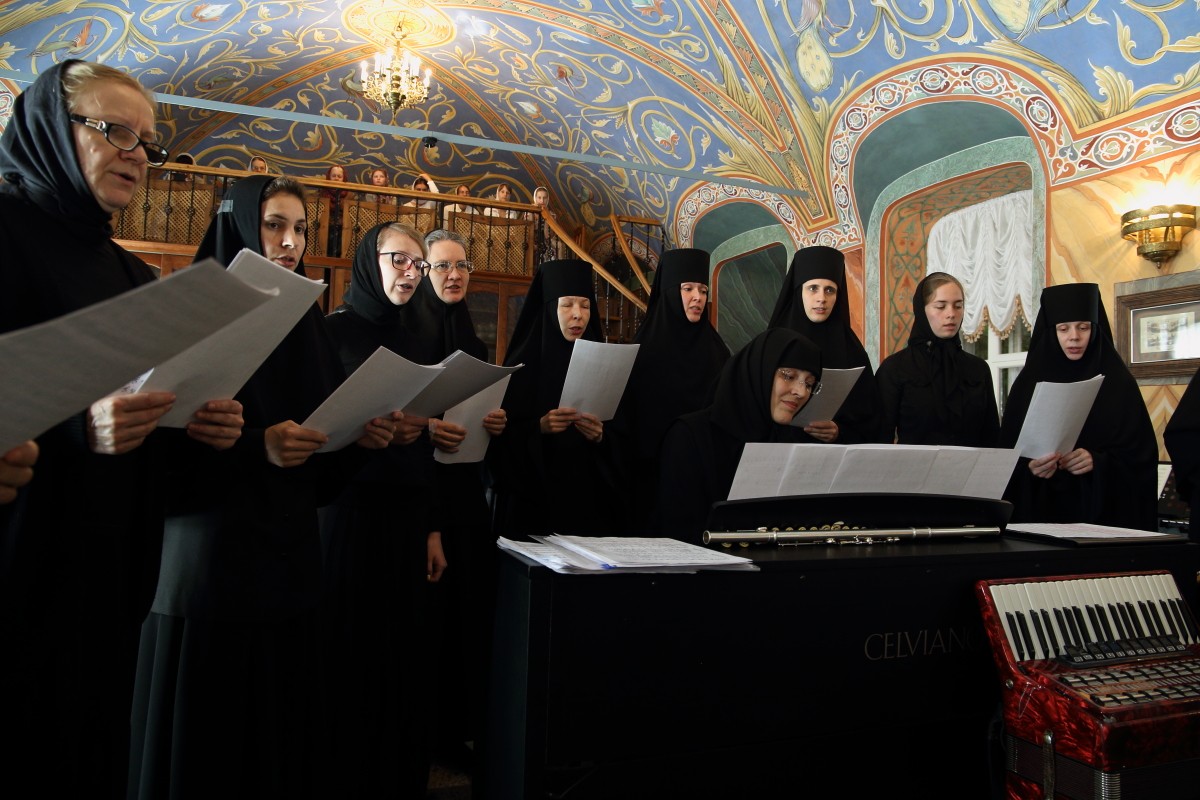 Торжества завершила праздничная трапеза, за которой прозвучало множество поздравлений в адрес игумении Елисаветы от гостей, прихожан и насельниц обители. Сестры монастыря, паломники и детско-юношеский хор при Успенском храме г. Сергиева Посада подготовили для именинницы и гостей музыкальное поздравление.