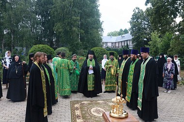 Завершил позднюю Литургию крестный ход, направившийся из Троицкого собора в храм преподобного Стефана Махрищского, где был совершен торжественный молебен у святых мощей преподобного.