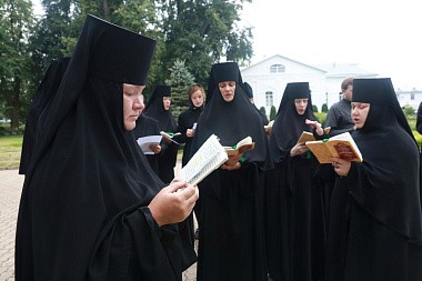 Богослужебные песнопения исполнил сестринский монастырский хор и мужской хор храма Живоначальной Троицы в Останкине г. Москвы.