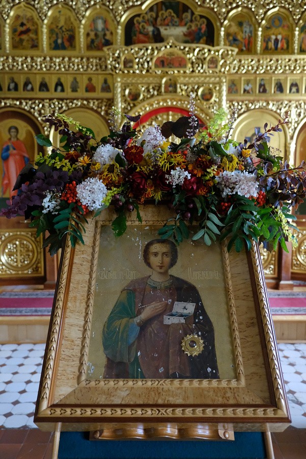К сожалению, икона великомученика в годы гонений была утеряна, но в настоящее время в монастырском храме святого благоверного великого князя Александра Невского устроен Пантелеимоновский придел, поэтому в этот день и в Акатовской обители совершается престольный праздник.
