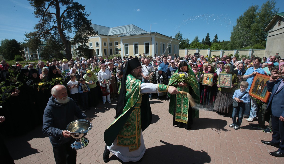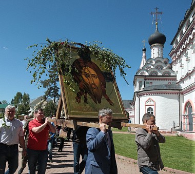 По окончании Великой вечерни с коленопреклоненными молитвами был совершен крестный ход, после которого все прихожане были приглашены на праздничную трапезу под березами. Там же состоялся концерт, подготовленный воспитанницами Александровской гимназии и сестрами обители.
