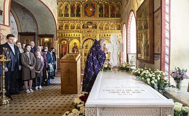 По заамвонной молитве была отслужена заупокойная лития у гробницы архимандрита Петра.