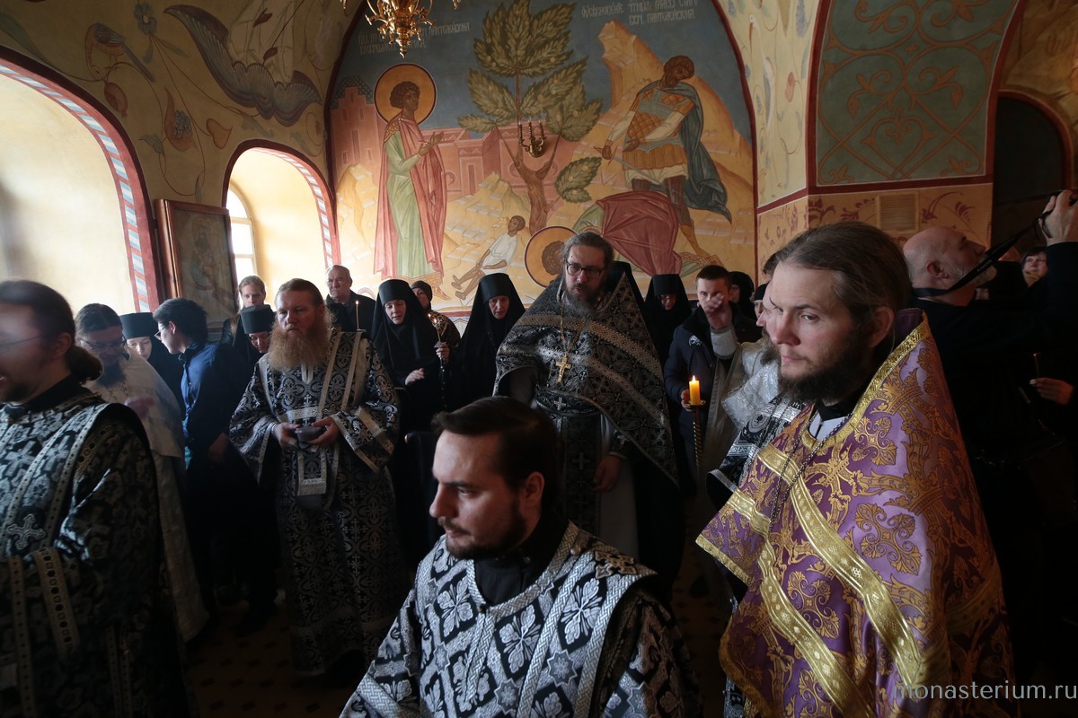 В этот день Литургию Преждеосвященных Даров в монастыре возглавил и.о. наместника Заиконоспасского ставропигиального мужского монастыря иеромонах Даниил (Константинов) в сослужении братии и духовенства Акатовской обители.