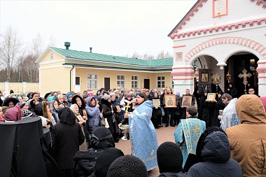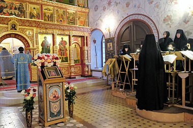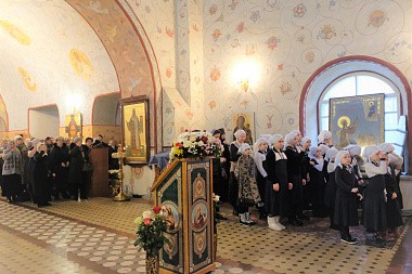 За богослужением молились настоятельница монастыря игумения Антония (Минина) с сестрами, настоятельница Никольского Шостьенского ставропигиального женского монастыря игумения Неонилла (Фролова) с сестрами, воспитанницы и учителя Александровской женской гимназии, прихожане и гости обители.