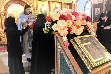 Накануне праздника перед всенощным бдением был отслужен молебен с водосвятием и акафистом «Скоропослушнице».
