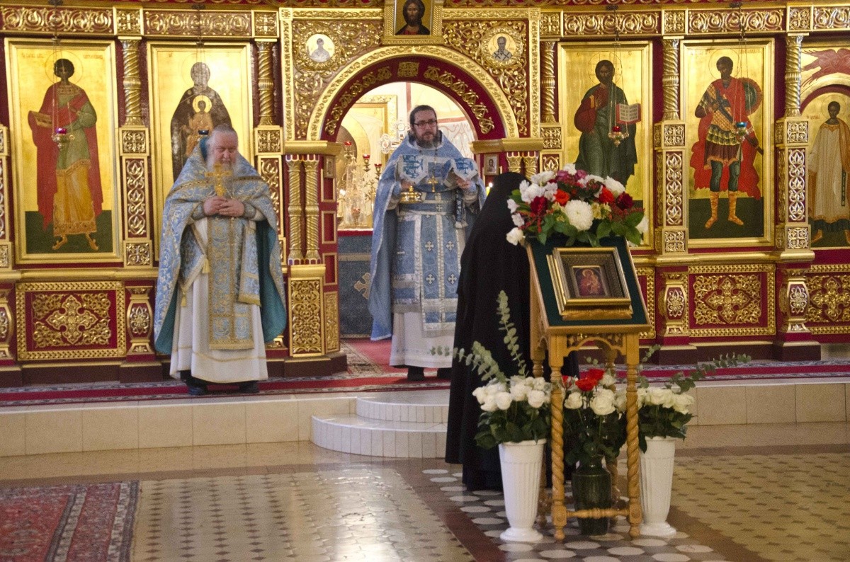 Накануне, 21 ноября, перед всенощным бдением был отслужен молебен с водосвятием и акафистом чествуемому святому образу.