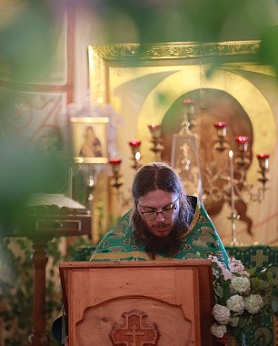 Накануне всенощного бдения был совершен водосвятный молебен с акафистом Святой Троице.