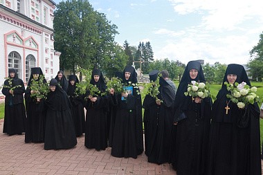 За богослужением молились настоятельница Свято-Троицкой Александро-Невской обители игумения Антония (Минина) с насельницами обители, настоятельница Никольского Шостьенского ставропигиального женского монастыря игумения Неонилла (Фролова) с сестрами.