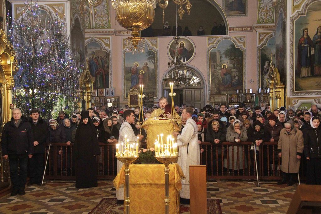 По запричастном стихе Его Высокопреосвященство поздравил настоятельницу монастыря игумению Рафаилу (Хильчук) с сестрами, всех прихожан и гостей со светлым праздником Рождества Христова и пожелал быть крепкими и стойкими в вере в эти нелегкие дни для православных верующих Украинской Православной Церкви.