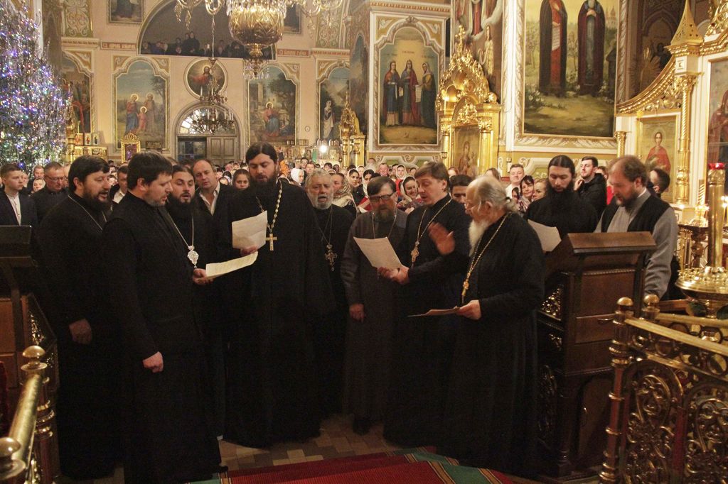 В завершение колядок сводным хором были исполнены тропарь и кондак праздника, а также «С нами Бог» Зиновьева.